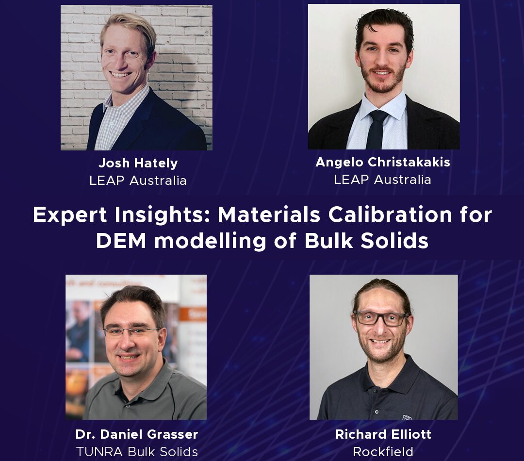 This post summarises our recent live panel discussion on materials calibration for discrete element method (DEM) modelling of bulk solids where we had the privilege of hosting industry leaders Daniel Grasser, Consulting Engineer at Tundra Bulk Solids and Richard Elliott, Technical Director – Bulk Handling at Rockfield Technologies. They were joined by DEM specialists from LEAP: Angelo Christakakis, Application Engineer & Technical Lead – DEM as well as Josh Hately, Engineering Solutions Manager, who moderated the discussion.