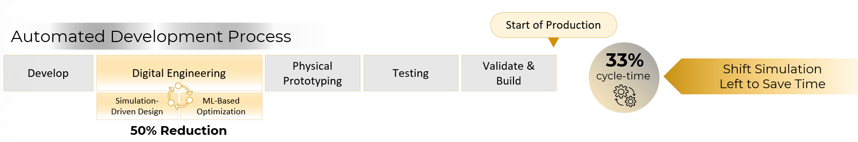 Now, rather than running isolated analyses to check performance after-the-fact, OptiSLang standardises and automates these workflows within your Digital Engineering phase, transforming the simulation process to include: