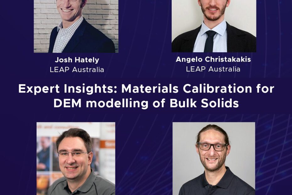 This post summarises our recent live panel discussion on materials calibration for discrete element method (DEM) modelling of bulk solids where we had the privilege of hosting industry leaders Daniel Grasser, Consulting Engineer at Tundra Bulk Solids and Richard Elliott, Technical Director – Bulk Handling at Rockfield Technologies. They were joined by DEM specialists from LEAP: Angelo Christakakis, Application Engineer & Technical Lead – DEM as well as Josh Hately, Engineering Solutions Manager, who moderated the discussion.